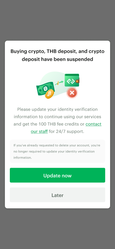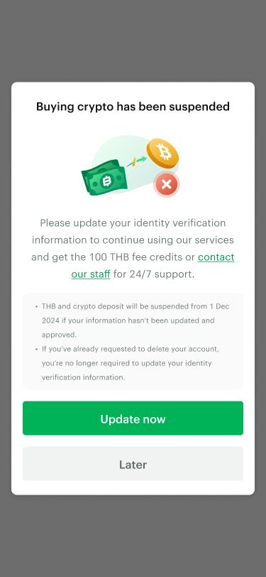 The 3rd notification: A notification informing users of the suspension of crypto buying, as well as THB and crypto deposit functions.