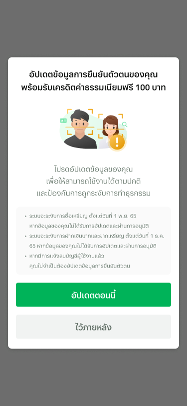 ระยะที่ 1: แจ้งเตือนเพื่อให้ทำการทบทวนข้อมูลบัญชีประจำปี (KYC update)