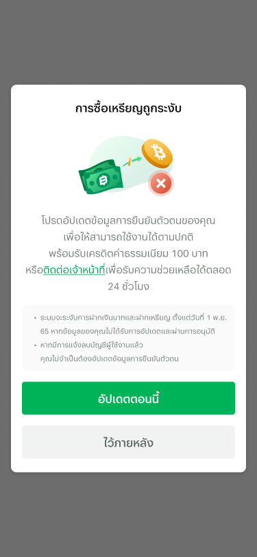 ระยะที่ 2: แจ้งเตือนเพื่อระงับการซื้อเหรียญดิจิทัล