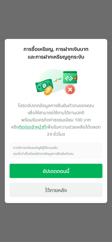 ระยะที่ 3: แจ้งเตือนเพื่อระงับการซื้อเหรียญดิจิทัล ฝากเงินบาท และฝากเหรียญดิจิทัล